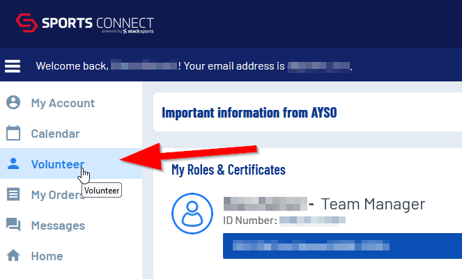 Click on the volunteer tab