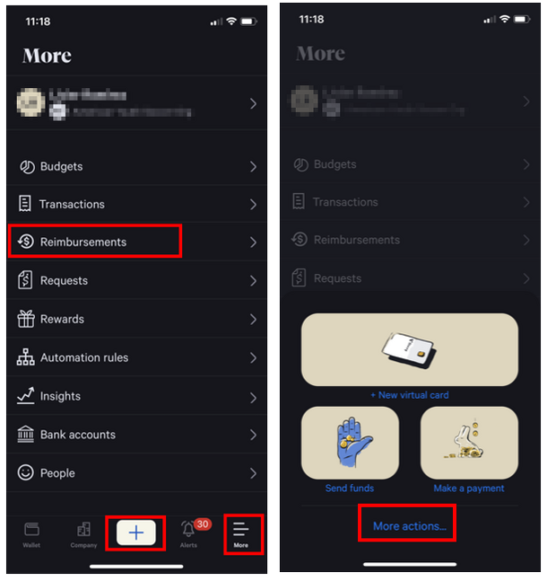 - From Navigation Menu, click on Add icon or click More icon on the right and select Reimbursements.