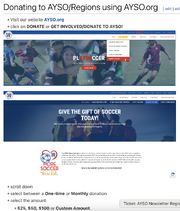 | 13:26, 16 February 2026 | Fundraising with AYSO.org-donate.png (file) | 1.45 MB | Maintenance script (talk | contribs) | == Summary == Importing file | 1 | |