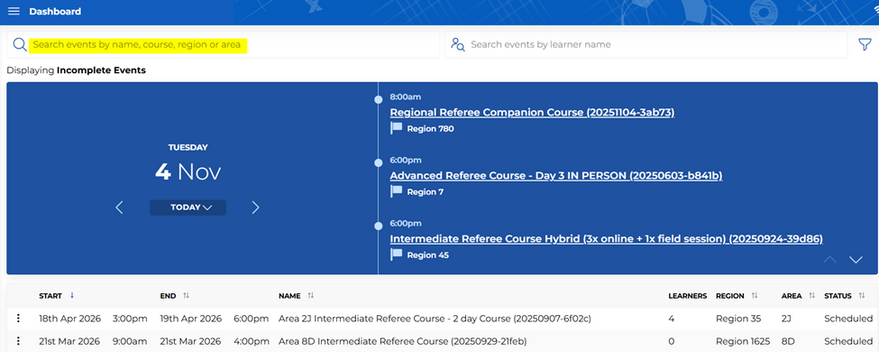 Now that you have assessed the Learners, you need to mark the event as completed.