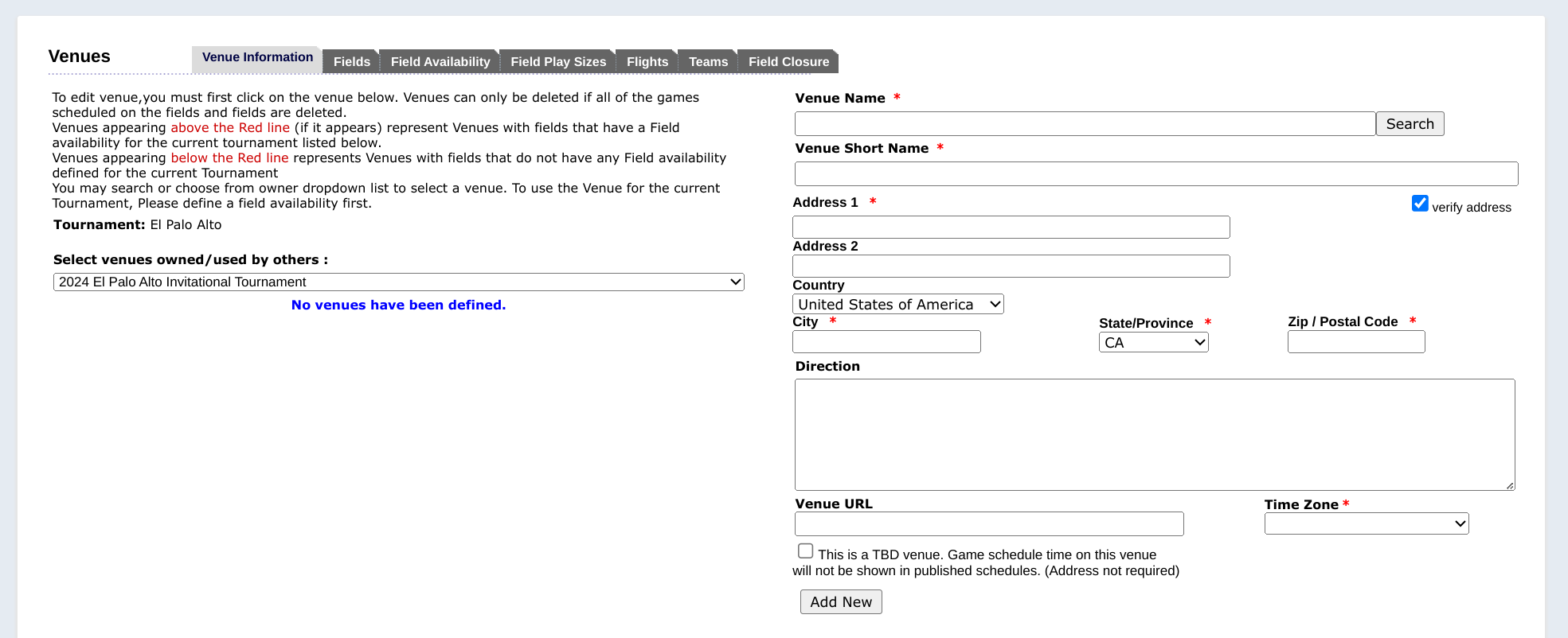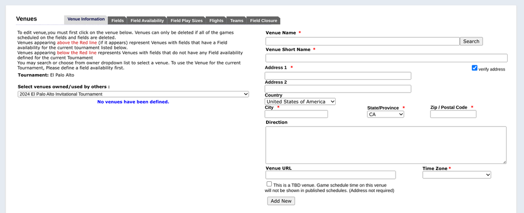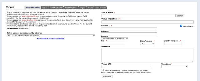 Blank Venues Page
