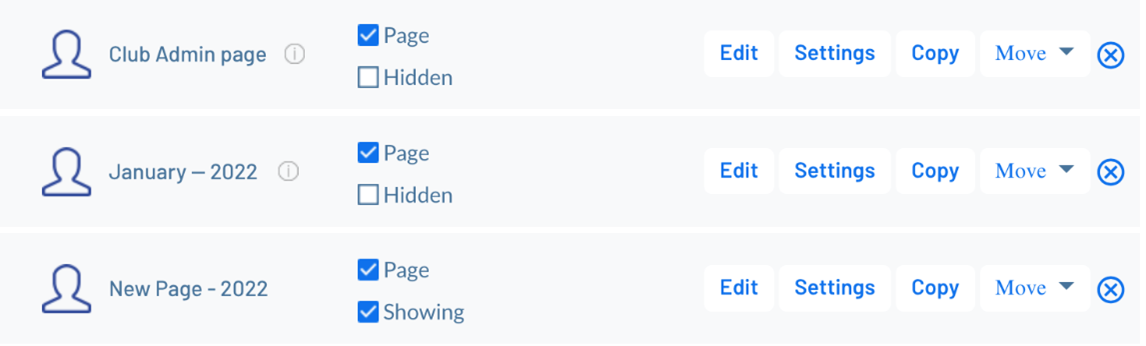 page showing