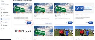 Screen capture of Safe Haven Courses, with AYSO's Safe Haven - Online ENROLL button circled