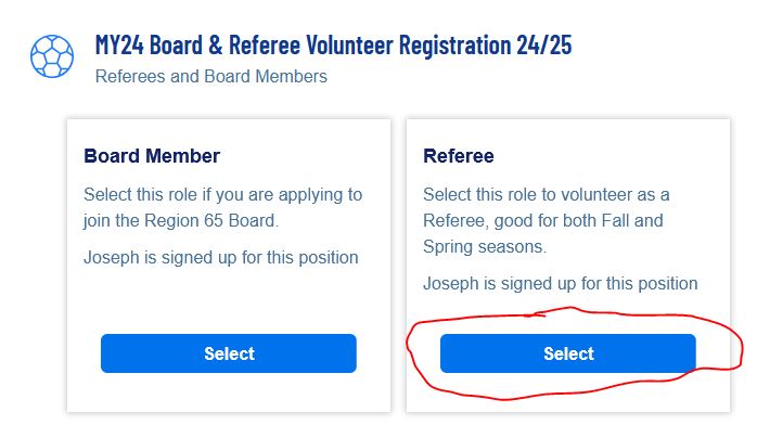 Sports Connect highlighting Select Referee button