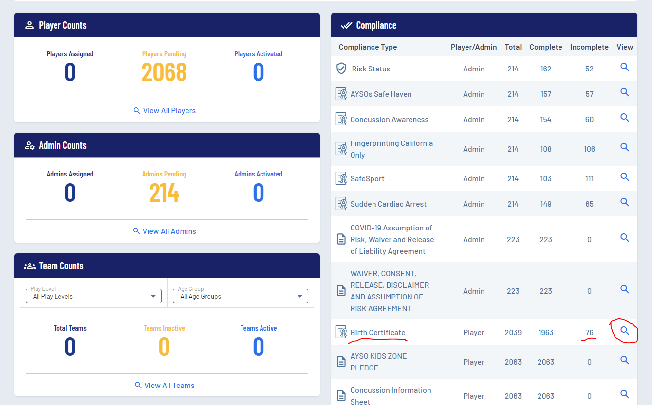 Highlights Birth Certificate, Number Incomplete and the magnifying glass