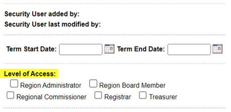 10. Scroll down and give the Level of Access. (Term Start Date is optional).