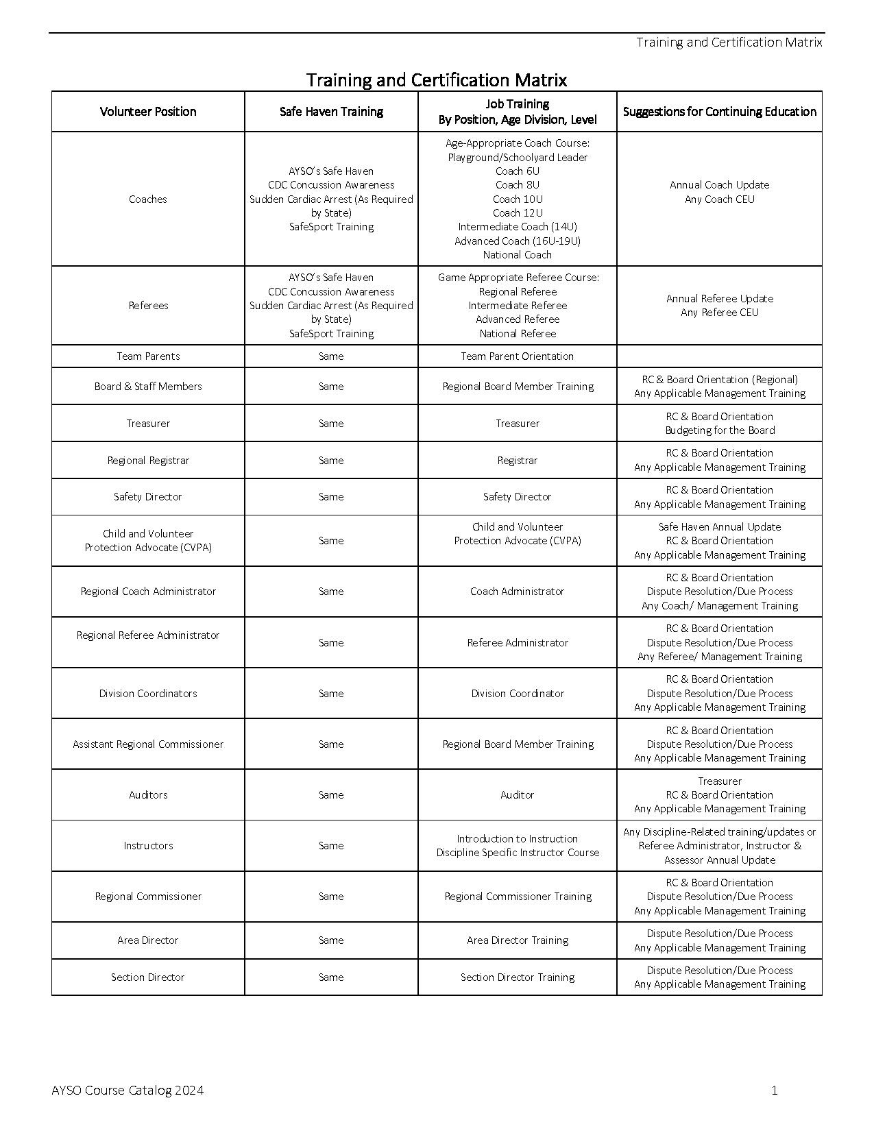 AYSO Course Catalog