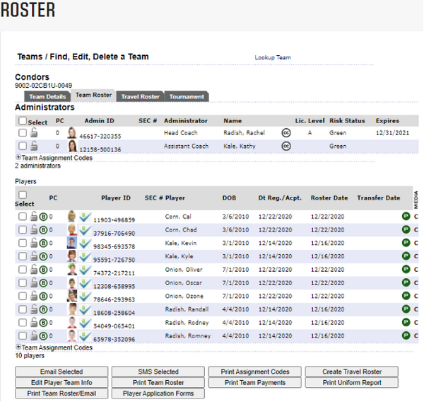 - Selecting Team info will take you to the team’s roster on the Association Platform.