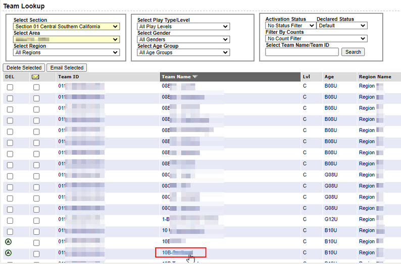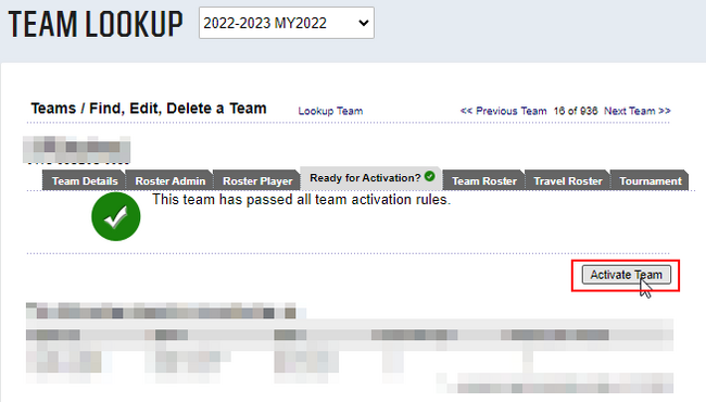 3. Click the Team ID/Name for the team you are looking to activate. You will be taken to the team's detail page.