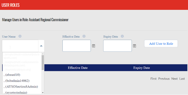 Note: If you leave these dates blank, the user will have the role immediately and up until you remove it from their account. Consider using effective and expiration dates if you know the duration of the role for a specific user (Common scenarios include one full season or time until next Board election).