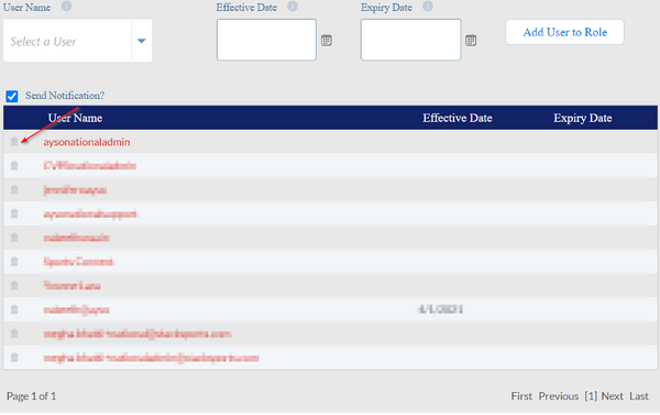 4. If you would like to remove a security role from a user's account, simply click the trash can next to their assigned security role and they will no longer have that role's permissions.