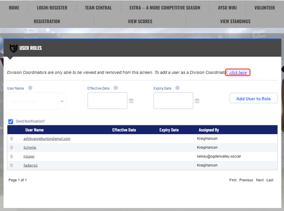 Click on the “People Icon” next to Division Coordinator
