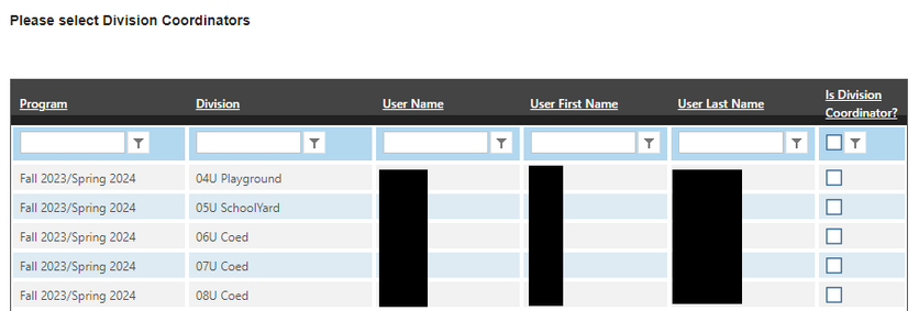 The role of Division Coordinator applies to specific divisions in specific programs. Due to this a volunteer that is a division coordinator for multiple seasons will need to have the role assigned each season.