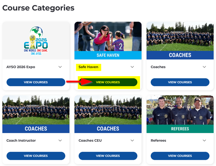 2. You will then be directed to the Course Categories page, where you can select the course category where the desired training course is assigned. Click View Course to view the suite of courses with that specific category.