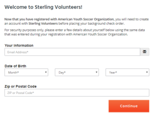Enter the same email address, Date of Birth and Zip Code used during your volunteer registration then, click Continue.