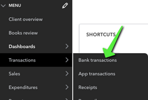 • Select Transaction -> Bank Transactions from the left Navigation Bar