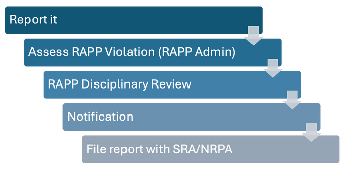 - RAPP Administrator: Manages implementation/enforcement of RAP Program throughout the Area. Provides investigatory work, documentation and recommended actions to the RAPP Disciplinary Panel.