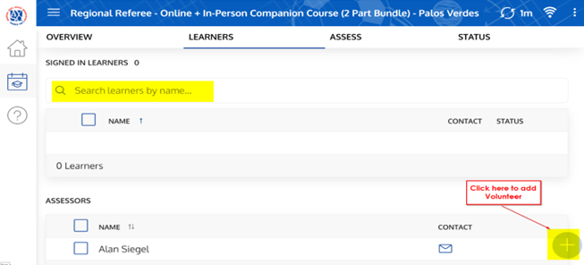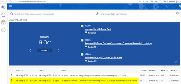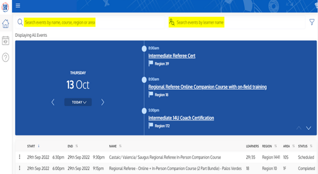 2. Search for the event by Region or Course. You can also search for the event by the volunteer’s name.