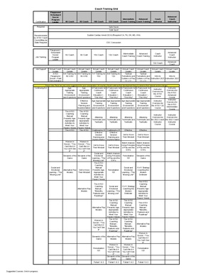 Coach Training Requirements and Recommendations listed by Coach Position. This list includes: Safety Training, Job Training, Job Support Courses, and Continuing Education for each Executive Member position and Regional Board Member position.