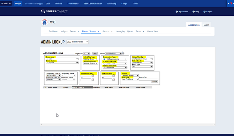 Sports Connect allows you to run reports based on the criteria decided. Sports Connect can provide report on: board member, training updates, Region Staff, Area Staff, coaches, and referees.