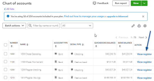 From the same page where you categorize transactions, you have an option on the right of your screen to "Go to bank register"