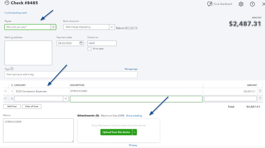Editing the transaction will open up the larger window, allowing you to edit the payee, the category and even add your attachments.
