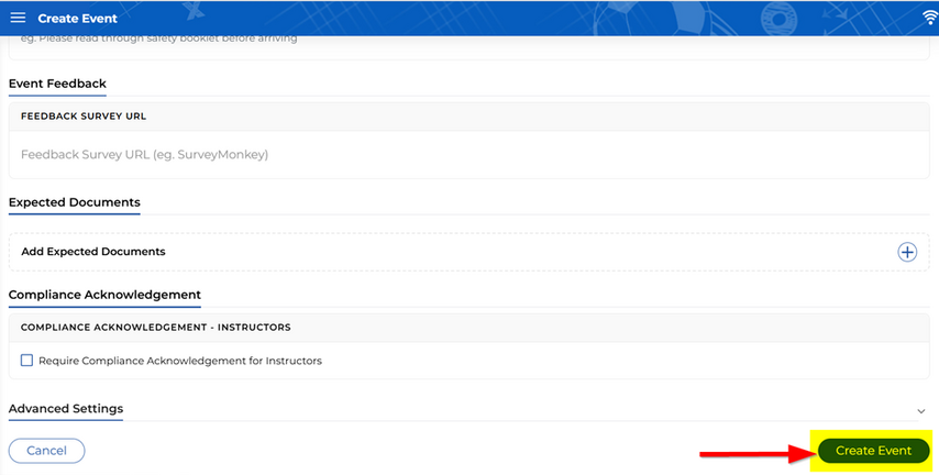 9. Once you have completed the required fields, select Create Event.