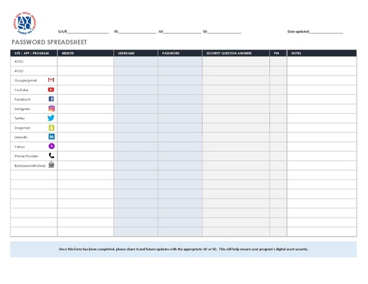 Digital Assets help run our regions but must be protected. Every Region needs to identify its digital assets and the security processes that work best for them. To help with that, here is a worksheet that can be used to manage your Region's digital assets.