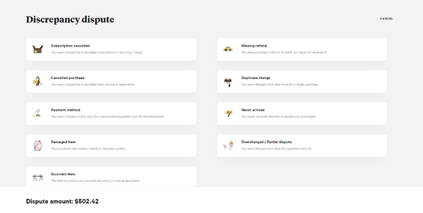 **Note: Before disputing transaction, it is recommended to contact the merchant first to resolve the discrepancy issue.