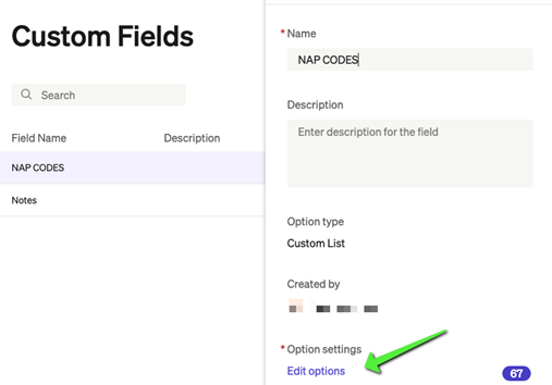 Click NAP codes to open the Edit Tab on the right and select "Edit Options" in the middle of this pop out menu.