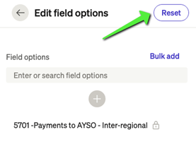 Click Resent at the top of the Edit Field Options Window