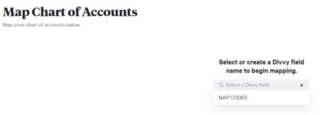 - Mapping - Select Configure next to Chart of Accounts and choose your NAP Codes from the Divvy Field you are mapping.