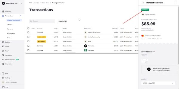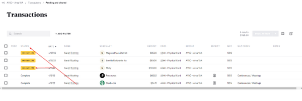 - Complete - The transaction is coded, and the receipts or invoices have been uploaded.