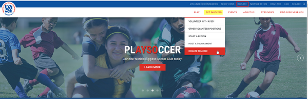 - click on DONATE or GET INVOLVED/DONATE TO AYSO!