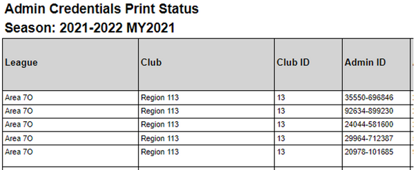 This report will show one line per volunteer and includes the following information about volunteers: Risk Submit Date, Risk Status, HIGHEST Coaching License Level, HIGHEST Referee Grade, Safe Haven, Concussion Awareness, SafeSport, and Sudden Cardiac Arrest.