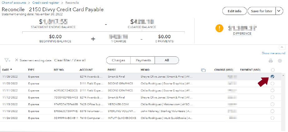 Check off cleared transactions