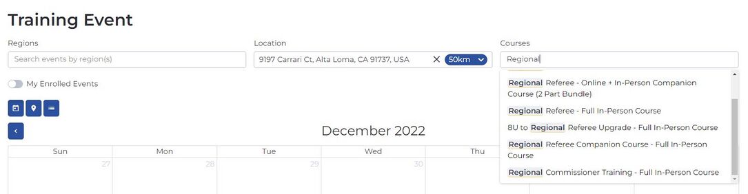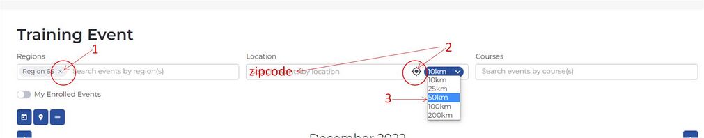 5. On the 'Training Event' page, you will be searching for the event you want to enroll in.