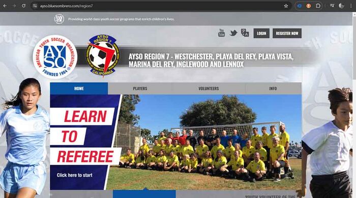 Typical Sports Connect Regional home page. "Team Central" may not be displayed here.