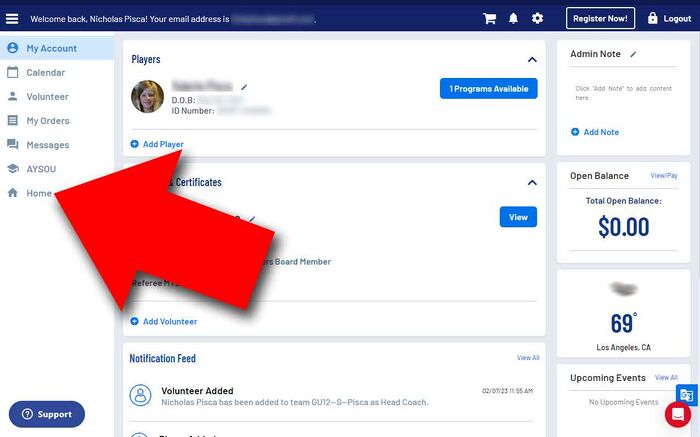 Click to Login. Once you access your Sports Connect Account, it will display Team Central on the homepage.