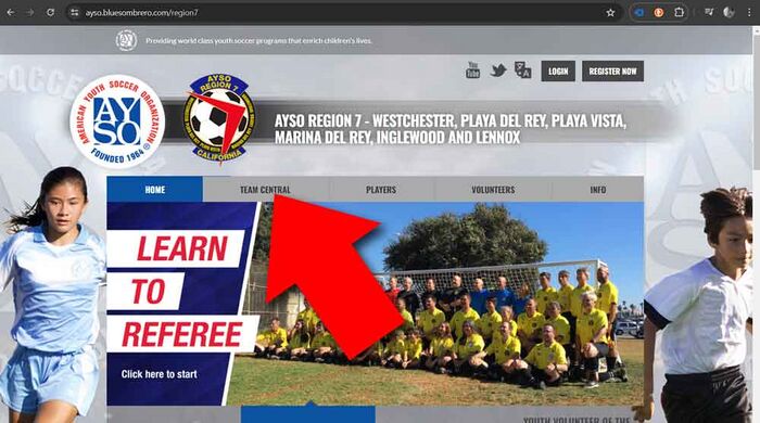 If you do not see "Team Central" in your Region's Website, you will need to log in first.