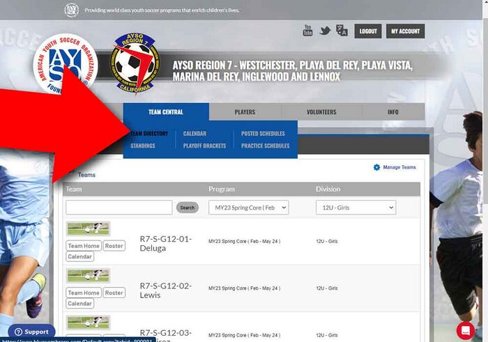 Team Central is a collection of web pages that displays your region's team listing, schedule, divisions, calendar, and other useful tools.