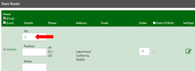 • Go to "Edit Roster" and enter the jersey number in "No." box and "Order" box.