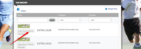 Click on Visit Team Page for any roster that has been posted.