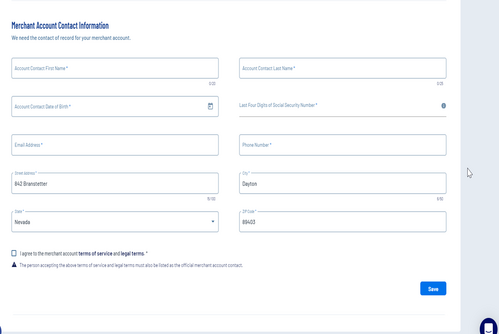 Continue with completing the Merchant Account Information