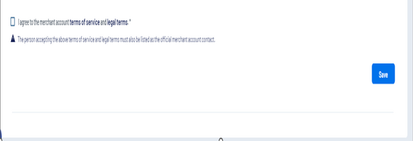 If everything is correct, check the box on the left-hand side next to: I agree to the merchant account terms of service and legal terms.