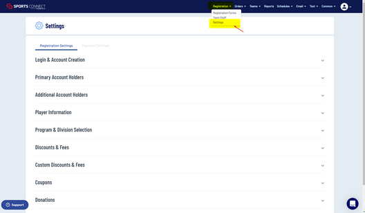 In the blue Tool Bar click on Registration, then click on Settings.