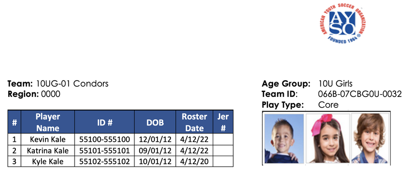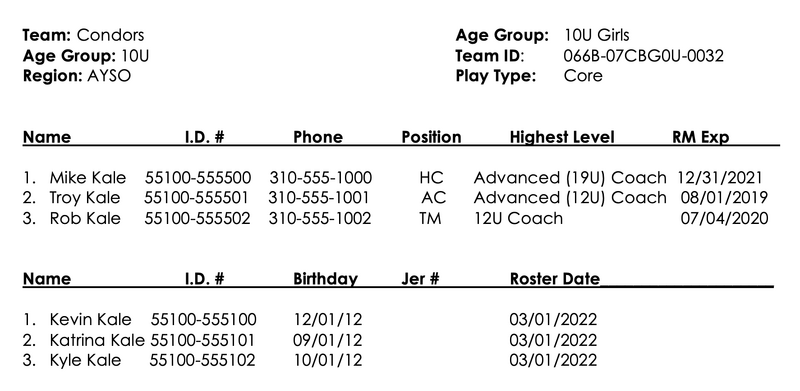 To be able to print out the official rosters, your team must be activated. There are two types of official rosters, Official Roster (No Photos) and Official Photo Roster.
