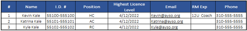 | Roster Date | Highest License Level |
