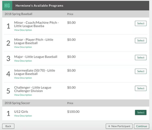 3. Select the Program you'd like to sign your son or daughter up for. Click on Continue.
