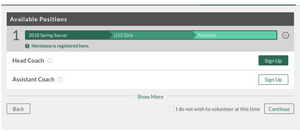 5. Sign up to volunteer on the Available Positions page. Choose the position you’re interested in, and you will be prompted to complete information about the position. If you do not wish to volunteer, mark the appropriate box below. Choose Continue.